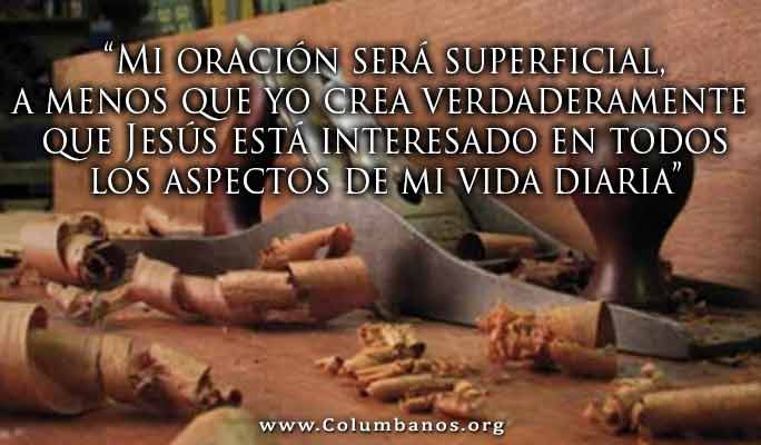 Unos días después de terminada la actuación, tenía una cita con mi directora espiritual. Sin embargo, decidí posponer nuestra reunión desde que sentí que no tenía nada que hablar con respecto a la oración. Ella inmediatamente me preguntó por qué mi vida estaba tan ocupada. Cuando le hablé de los trabajos de carpintería, ella me preguntó si había hablado con Jesús al respecto. "No, él no estaría interesado", fue mi respuesta inmediata. Con una mirada de asombro en su rostro, ella preguntó: "¿No crees tú? ... ¿Qué hizo durante varios años antes de convertirse en un misionero?"